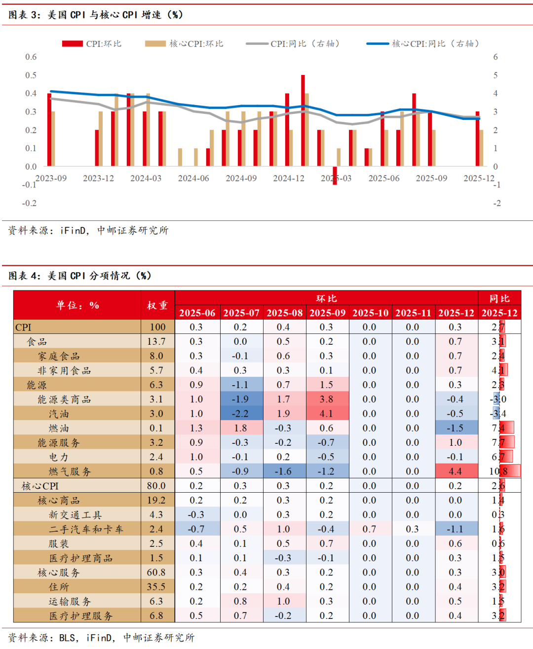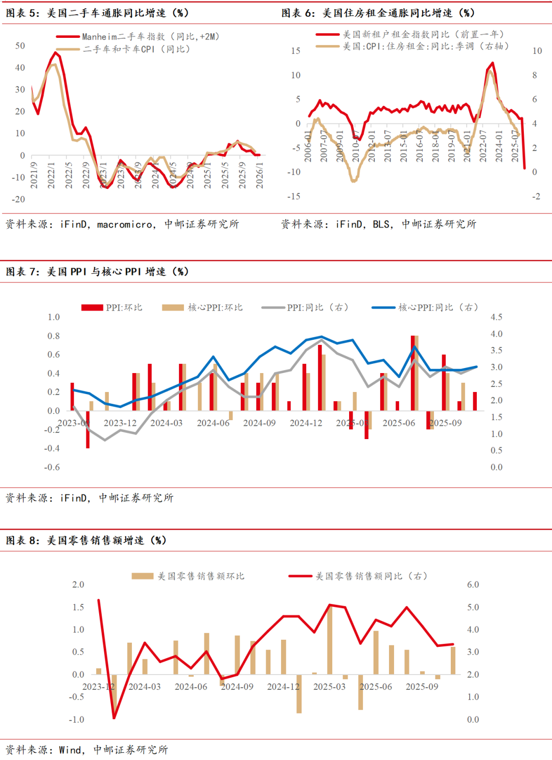 经济数据方面,好意思国公布了12月CPI数据,这是好意思国政府停摆以来公布的首份竣工通胀数据,中枢CPI环比仅增长0.2%,低于市集预期。从分项看,通胀的主要株连来自二手车和能源商品。此前市集对通胀的中枢担忧主要调治在关税身分上,但现存数据证据,关税对物价的传导效应彰着弱于市集此前的预期。二手车与住房房钱的前瞻方针也引导通胀下行趋势尚未完了。跟着利率下行,成屋销售量回升但仍处于低位,住房市集低迷。初请休闲金东说念主数有所下行,11月零卖销售额温煦增长,进一步开释经济软着陆信号。