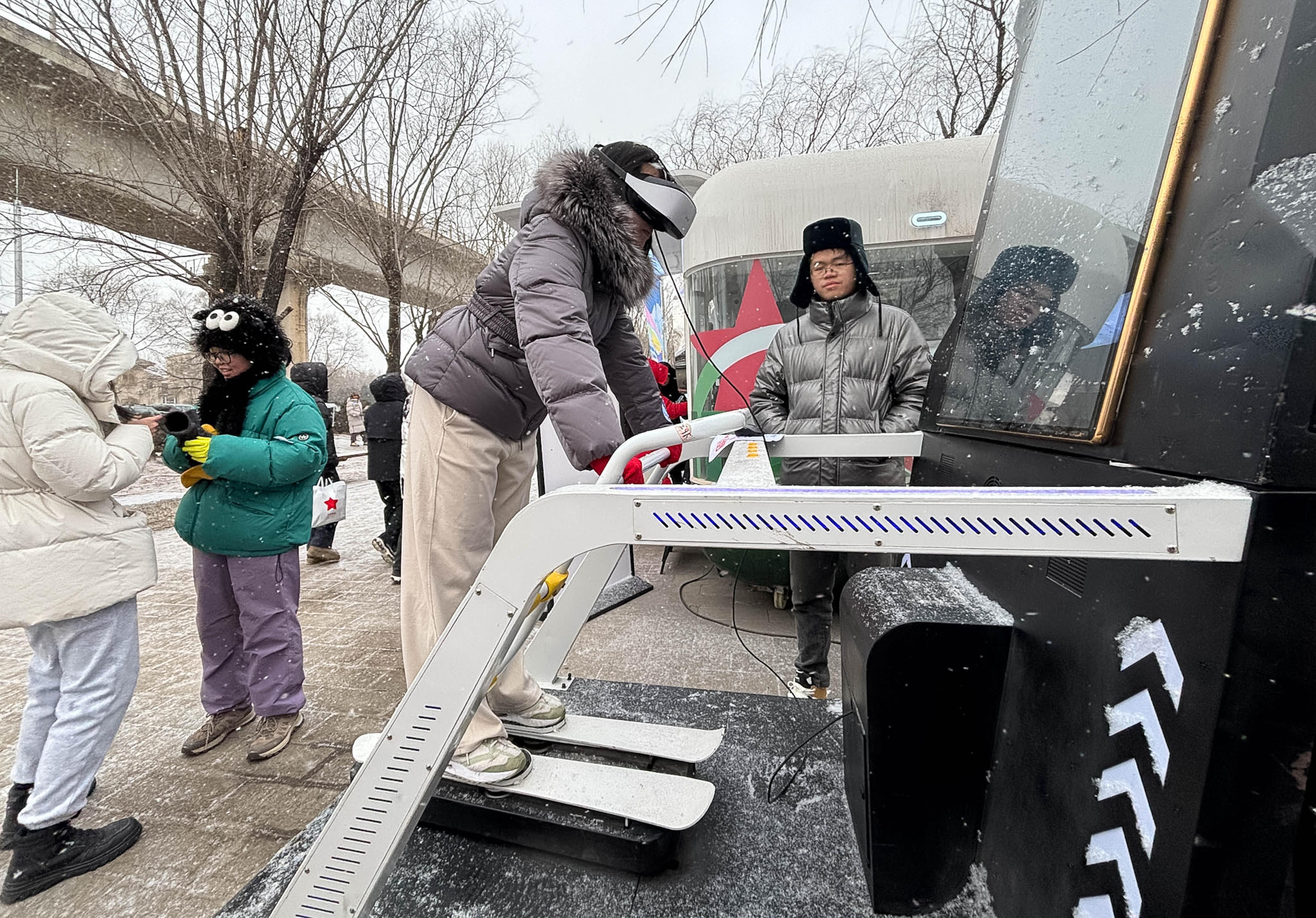 随后,东谈主们插足到冰雪领路的餍足中。现场不仅有冰上保龄球、雪地摩托、冰蹴球等10余项真冰真雪行径神气,还有VR模拟滑雪等行径,让东谈主们感受速率与心绪。此外,“冰雪嘉年华”市场也为游东谈主增添了一抹暖意,不仅有凉水河冰雪节和北粮国外·体育小镇等文旅神气互动来披发冰雪体验券、破钞优惠券,还有如火如荼的烤冷面、烤鱿鱼、生煎包、现磨咖啡,亦中亦西,让东谈主们在参与冰雪领路的同期暖暖我方的胃。